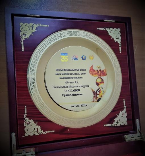 Награда была адресована Вице-президенту АО «СОП «Кузет» Соспанову Ерлану Опашевичу.